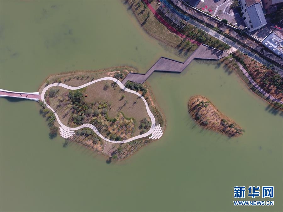 空中俯瞰長沙后湖(10月29日無人機(jī)拍攝)。 近日,湖南長沙后湖水環(huán)境綜合整治工程全面完工,沿湖生態(tài)環(huán)境舊貌換新顏,成為市民游客休閑散步的好去處。 新華社記者 龍弘濤 攝