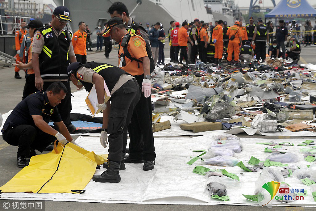 當(dāng)?shù)貢r(shí)間2018年10月30日,印尼雅加達(dá), 印尼搜救隊(duì)持續(xù)打撈出獅航墜毀客機(jī)遇難者遺物和飛機(jī)殘骸。一架載有189人的印尼獅子航空(Lion Air Air)客機(jī)在從首都雅加達(dá)飛往邦加檳港過(guò)程中墜海。機(jī)上載有181名乘客,6名機(jī)組人員和2名飛行員,乘客中包括20名官員。圖片作者:ADEK BERRY