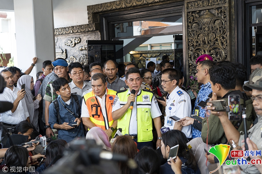 印尼哈達(dá)國(guó)際機(jī)場(chǎng),機(jī)場(chǎng)管理局負(fù)責(zé)人Bagus Sunjoyo就獅航JT610墜機(jī)事件召開(kāi)記者會(huì)。