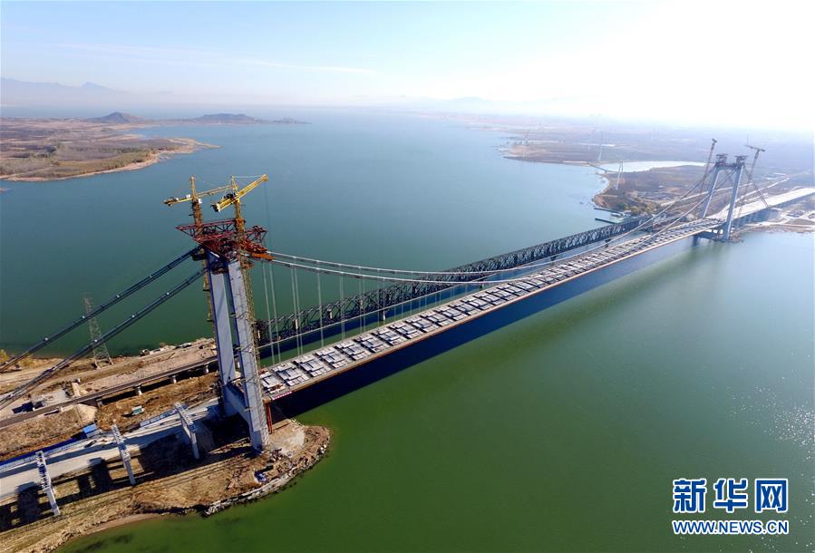 當(dāng)日,河北省懷來縣官廳水庫公路大橋主橋成功合龍。據(jù)介紹,該橋采用雙向四車道城市主干路標(biāo)準(zhǔn)建設(shè),設(shè)計(jì)為雙塔單跨懸索橋,全長(zhǎng)1988米, 橋主塔高107.8米,橋?qū)?3.6米,主橋720米一跨過湖。