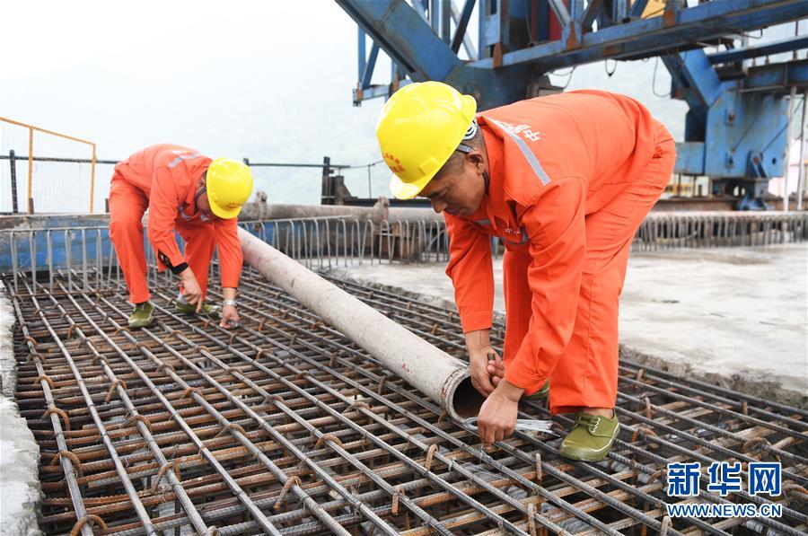 10月23日,在重慶涪陵,施工人員在渝懷鐵路涪秀二線重點工程——烏江右線大橋主跨合龍現(xiàn)場作業(yè)。 當日,由中鐵四局承建的渝懷鐵路涪秀二線重點工程——烏江右線大橋主跨成功合龍,標志著大橋主體工程全部順利結(jié)束。烏江右線大橋項目全程460.1米,主跨192米,跨越烏江和319國道。在兩年多的建設過程中,施工人員攻克了“不等高墩”“不對稱邊跨”“邊跨入隧”等多個技術(shù)難題。 新華社記者王全超攝