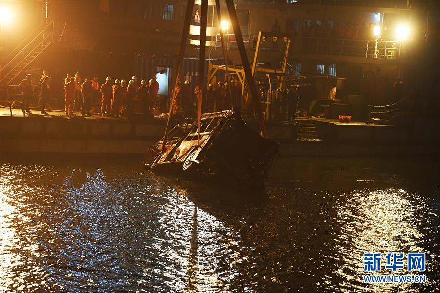 10月31日23時30分左右,記者在重慶萬州江面的打撈現(xiàn)場看到,隨著浮吊船的吊索緩緩提升,墜江的公交車被打撈出水面。 10月28日10時8分,重慶市萬州區(qū)一輛公交車行駛至長江二橋時,與一輛小轎車相撞后墜江。經(jīng)公安機關初步核實,失聯(lián)人員15人。