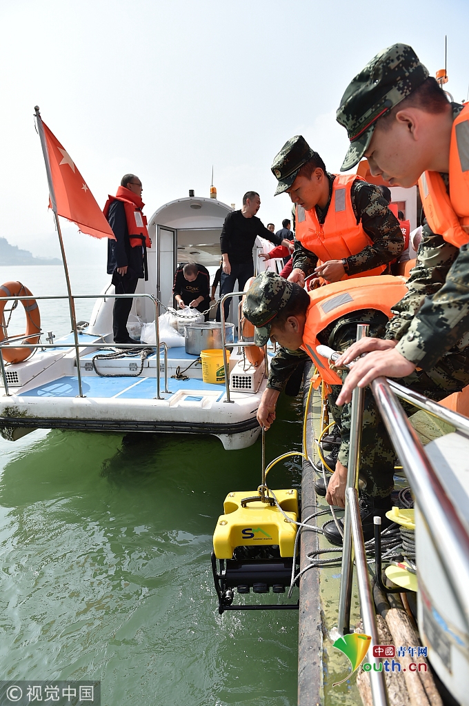2018年10月29日,武警重慶總隊船艇支隊官兵使用水下機器人搜尋。