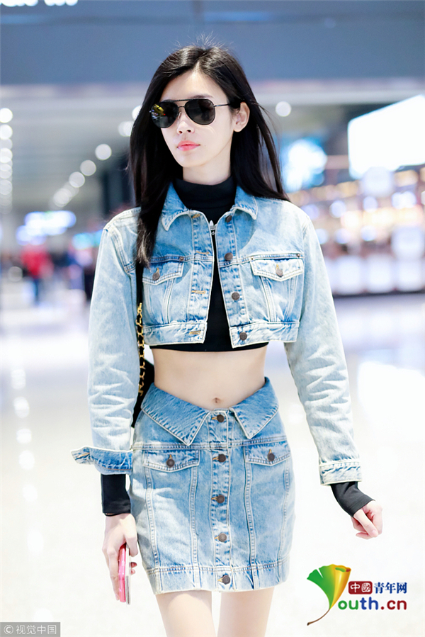 奚夢瑤一身帥氣牛仔裝 露細(xì)腰長腿顯 ...