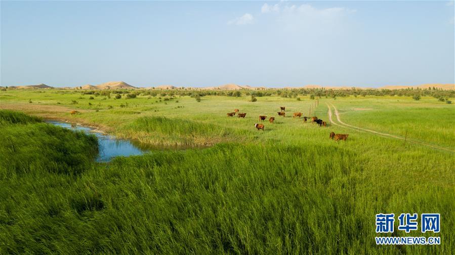 內(nèi)蒙古鄂爾多斯市恩格貝生態(tài)旅游區(qū)(6月8日無人機拍攝)。 新華社記者彭源攝