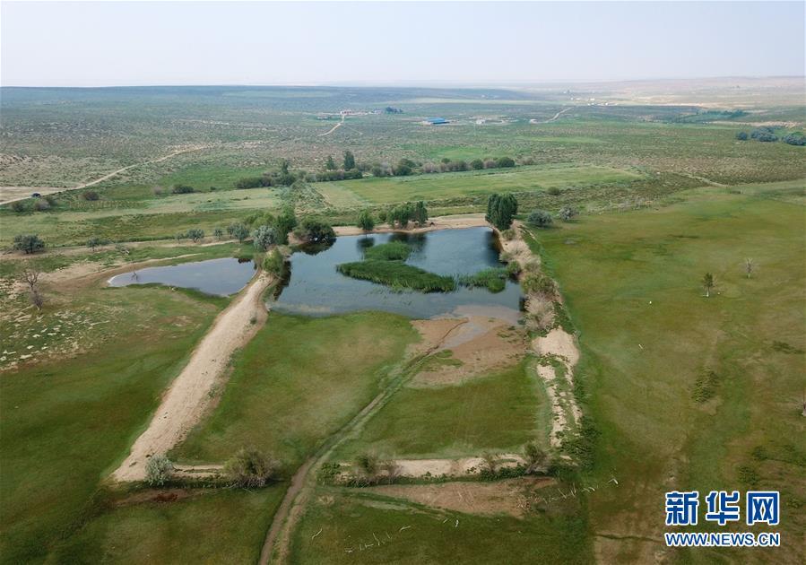內(nèi)蒙古杭錦旗位于庫布其沙漠中的生態(tài)修復(fù)景觀(7月11日無人機拍攝)。 新華社記者彭源攝