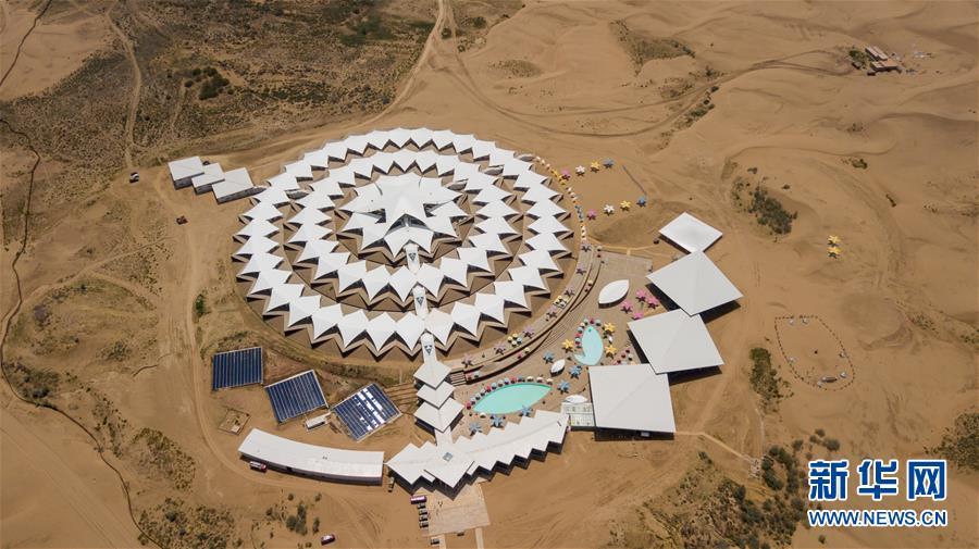 位于內(nèi)蒙古杭錦旗的七星湖沙漠酒店(8月1日無人機拍攝)。 新華社記者邢廣利攝