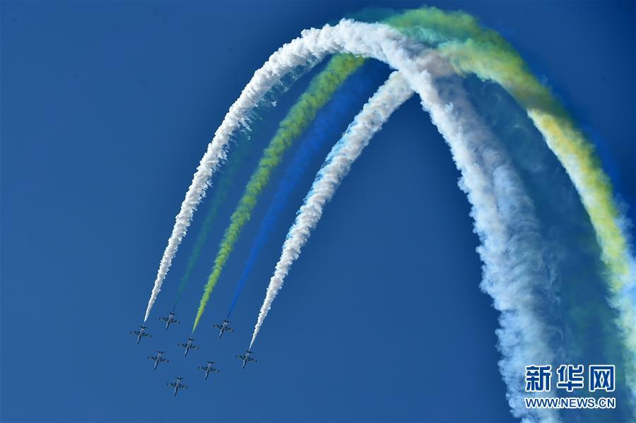 11月6日,中國空軍八一飛行表演隊在航展現(xiàn)場進行飛行表演。當日,第十二屆中國國際航空航天博覽會在珠海開幕。 新華社記者梁旭攝