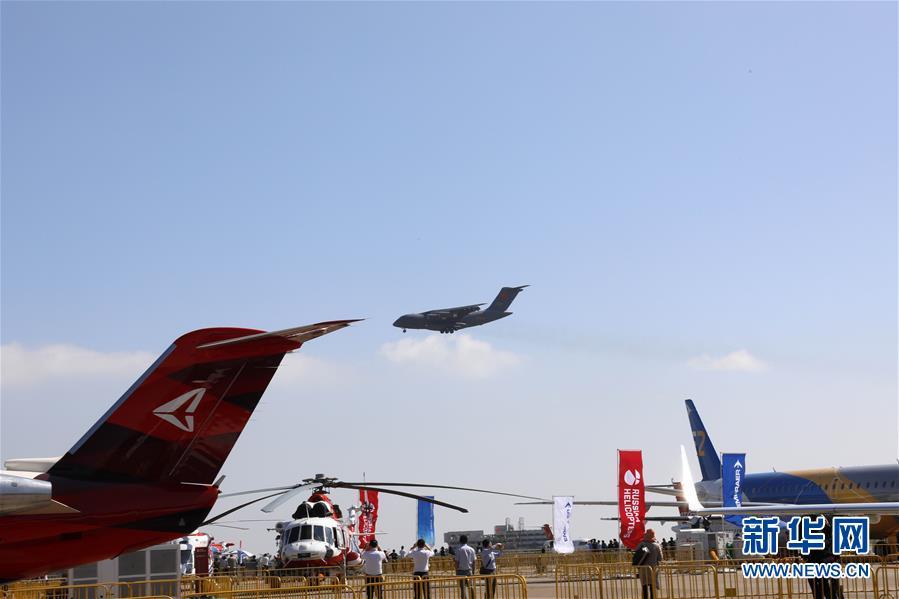 11月6日,中國空軍運-20飛機在航展現(xiàn)場進行飛行展示。當日,第十二屆中國國際航空航天博覽會在珠海開幕。 新華社記者梁旭攝