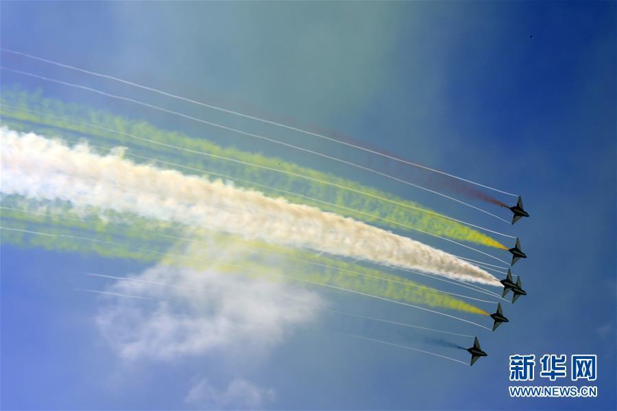 11月6日,中國空軍八一飛行表演隊在航展現(xiàn)場進行飛行表演。當日,第十二屆中國國際航空航天博覽會在珠海開幕。 新華社記者楊光攝