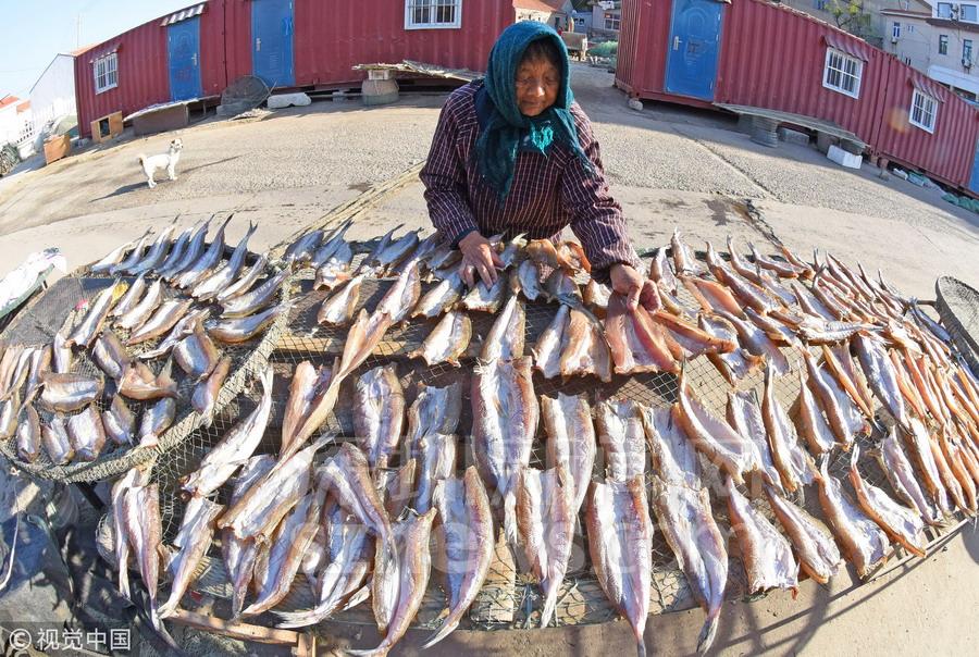 江蘇連云港:漁家曬秋 魚(yú)干飄香