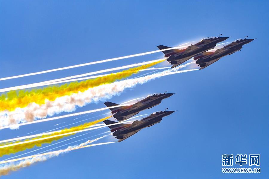 11月6日,中國(guó)空軍八一飛行表演隊(duì)在航展現(xiàn)場(chǎng)進(jìn)行飛行表演。當(dāng)日,第十二屆中國(guó)國(guó)際航空航天博覽會(huì)在珠海開(kāi)幕。新華社記者楊光攝