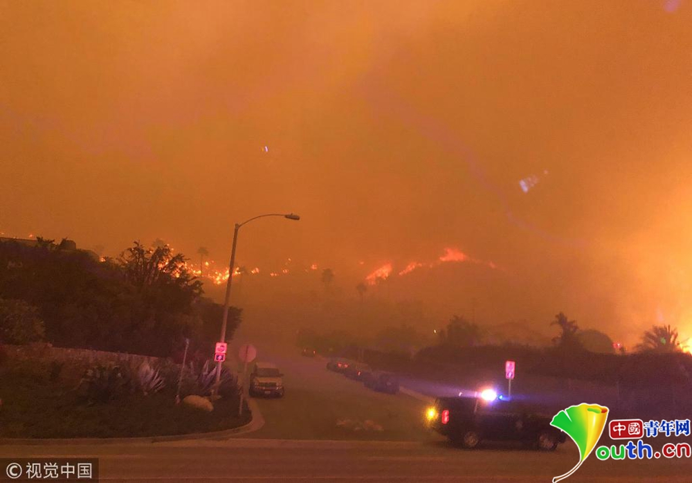 山火迅速蔓延至剛剛發(fā)生槍擊案的千橡樹市,并在9日翻過圣莫妮卡山,在強(qiáng)風(fēng)的助力下向海邊蔓延。