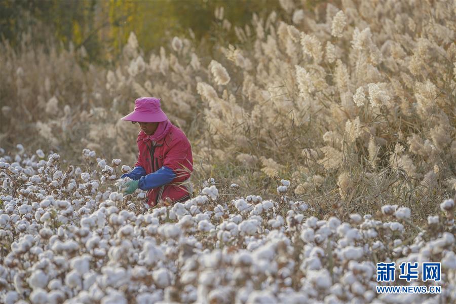 10月21日,棉農(nóng)在棉田采收棉花。目前,河北省南宮市40萬畝棉花迎來采收季。新華社記者朱旭東攝