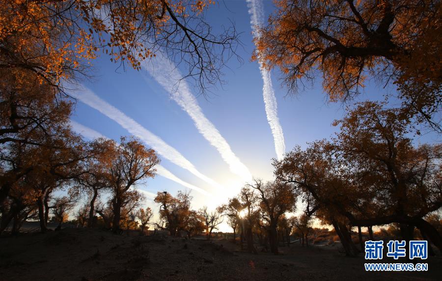這是在內(nèi)蒙古自治區(qū)額濟(jì)納旗拍攝的胡楊林(10月10日攝)。 金秋時(shí)節(jié),內(nèi)蒙古自治區(qū)額濟(jì)納旗胡楊林如同披上金裝,成為大漠中的一抹亮色,吸引眾多中外游客前來(lái)觀賞游玩。 新華社記者安希雅攝