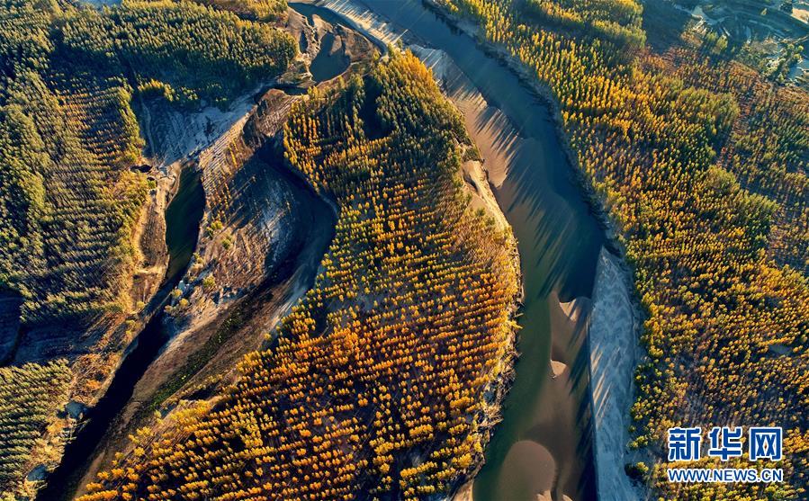 這是河北省樂亭縣境內(nèi)的灤河秋色(11月6日無人機(jī)拍攝)。