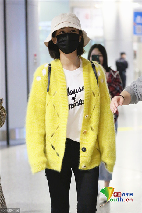 日前,楊紫現(xiàn)身長沙黃花機場,她頭戴漁夫帽的她口罩遮面,身著鮮黃針織衫相當搶眼,一路獲粉絲跟拍。