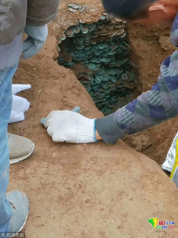 2018年11月9日,陜西渭南,白水一工地發(fā)現(xiàn)大量古幣,共清理發(fā)掘古幣920斤、約10萬枚。經(jīng)初步鑒定,這些古幣多為北宋時期錢幣,初步判斷為一般文物,對研究當(dāng)?shù)亟?jīng)濟(jì)等有一定價值。圖片:視覺中國。文字:華商報