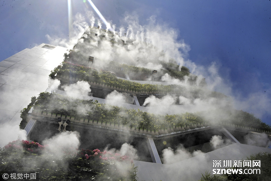 深圳新聞網(wǎng)訊 2018年6月10日,西安,高樓外長(zhǎng)滿綠植,還縈繞著霧氣。這段只有6秒的短視頻在抖音火了,網(wǎng)友評(píng)論這是“第四代住房”,其實(shí)這是西安市眾創(chuàng)示范街區(qū)的一處安裝了智能霧森系統(tǒng)的西北最大戶外垂直綠化。