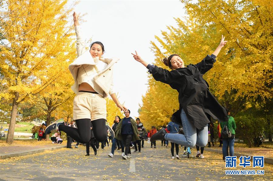 近日,沈陽農業(yè)大學內的銀杏樹進入最佳觀賞期,長達一千余米的金色“銀杏路”吸引了許多市民前去游覽,拍照。 新華社記者龍雷攝