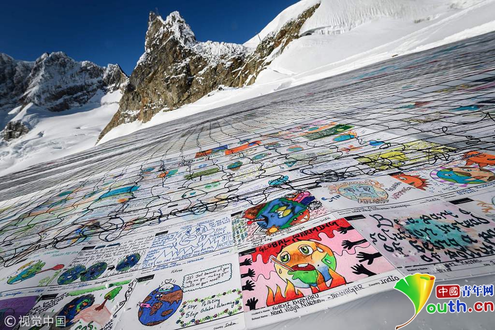 “少女峰”上展示的十萬(wàn)多張明信片,呼吁關(guān)注氣候變暖。
