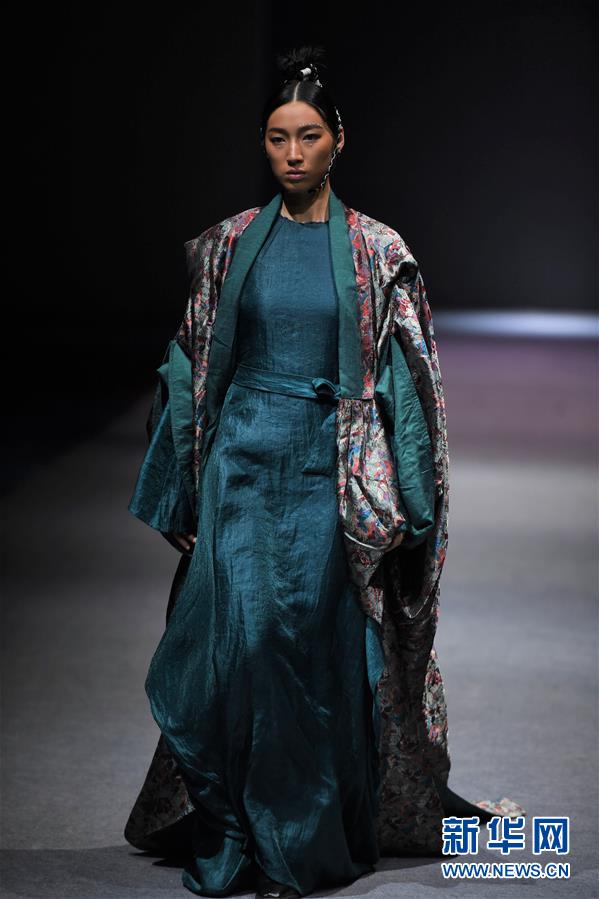 模特在AJ-NAMO藏裝秀上展示藏族設(shè)計(jì)師阿佳娜姆設(shè)計(jì)的時(shí)裝(11月18日攝)。