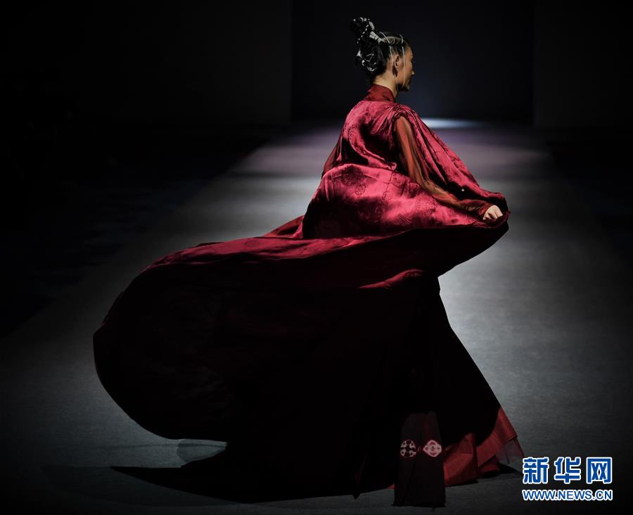 模特在AJ-NAMO藏裝秀上展示藏族設計師阿佳娜姆設計的時裝(11月18日攝)。  新華社記者 普布扎西攝