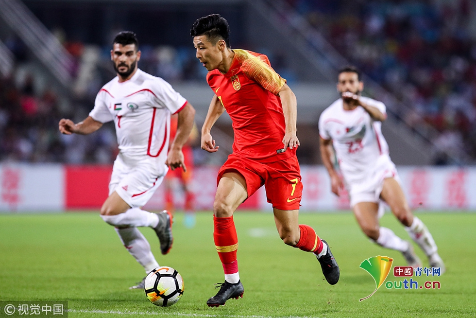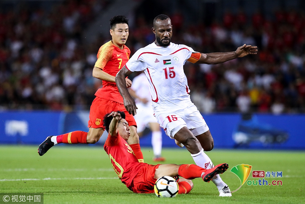 2018年11月20日,???,2018國際足球友誼賽,中國男足Vs巴勒斯坦。郜林拼搶 圖片作者:null