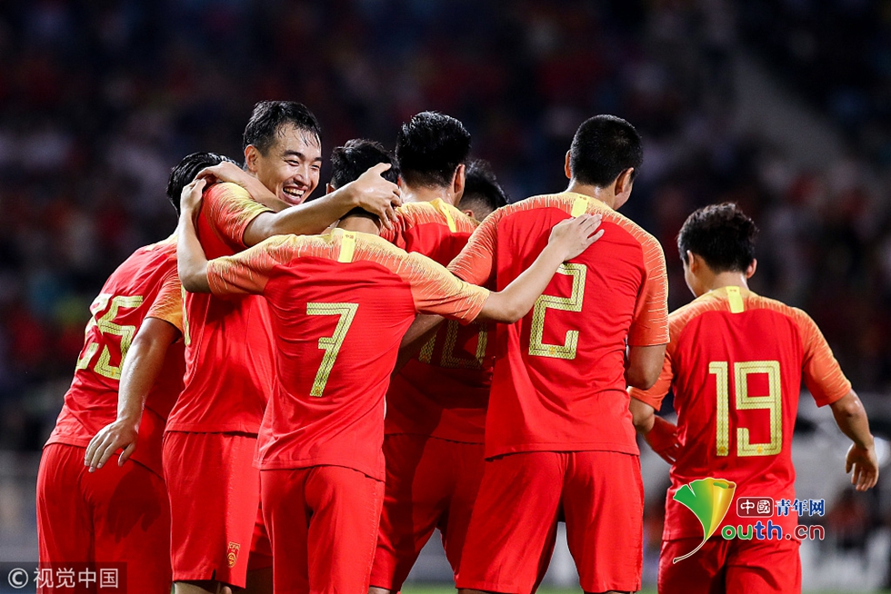 國足將士慶祝馮瀟霆進(jìn)球 圖片作者:null