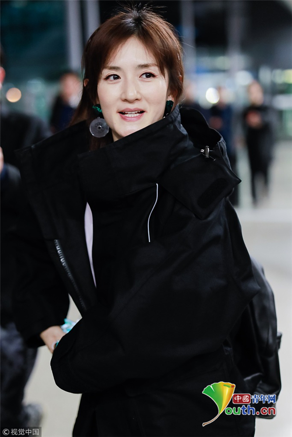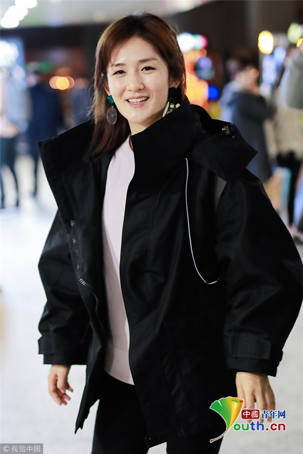 11月20日,湖南省長沙市,謝娜抵達長沙機場,一身黑衣酷感,遇到粉絲熱情揮手,她編著小辮露出甜笑,少女感爆棚!
