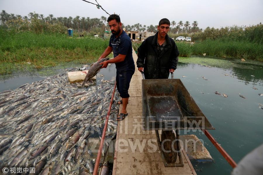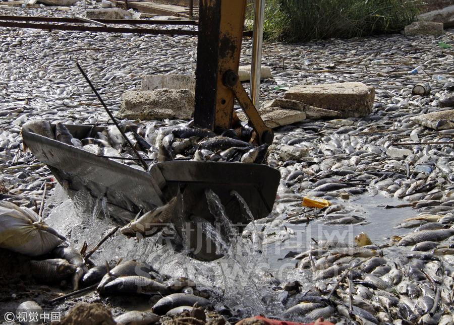 伊拉克河流一夜之間漂浮數(shù)萬(wàn)死魚 密密麻麻擠滿河道