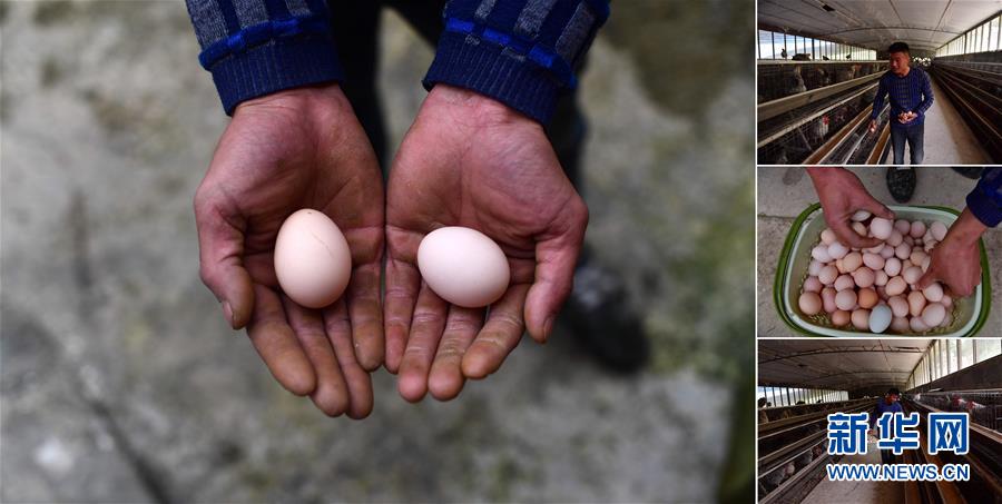 拼版照片:左圖為貧困戶(hù)李先強(qiáng)手捧養(yǎng)殖合作社生產(chǎn)的雞蛋(11月19日攝);右圖為李先強(qiáng)在雞舍里撿雞蛋(照片均攝于11月19日)。李先強(qiáng)是融水苗族自治縣香粉鄉(xiāng)香粉村的貧困戶(hù),從2016年開(kāi)始,他和15個(gè)貧困戶(hù)一起發(fā)展土雞養(yǎng)殖。目前合作社養(yǎng)有3000多只雞,年產(chǎn)雞蛋1萬(wàn)多斤。 廣西融水苗族自治縣是國(guó)家扶貧工作重點(diǎn)縣,全縣“九山半水半分田”,生活生產(chǎn)環(huán)境較為惡劣,脫貧攻堅(jiān)任務(wù)艱巨,目前還有7.68萬(wàn)貧困人口。面對(duì)經(jīng)濟(jì)發(fā)展落后、貧困面廣且程度深的現(xiàn)狀,當(dāng)?shù)匕衙撠毠?jiān)與創(chuàng)新產(chǎn)業(yè)扶持相結(jié)合,依托生態(tài)資源優(yōu)勢(shì),實(shí)施“特色產(chǎn)業(yè)富民行動(dòng)”,通過(guò)發(fā)展特色民族旅游、林下經(jīng)濟(jì)和特色養(yǎng)殖業(yè)等扶貧產(chǎn)業(yè),帶動(dòng)貧困群眾依靠勤勞的雙手,拔窮根摘窮帽,實(shí)現(xiàn)脫貧致富。據(jù)了解,目前全縣貧困戶(hù)參與特色產(chǎn)業(yè)發(fā)展的有2.9萬(wàn)戶(hù),扶貧產(chǎn)業(yè)覆蓋率達(dá)95%。 新華社記者 黃孝邦 攝