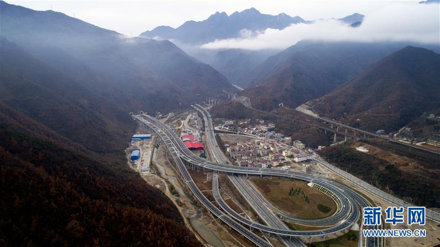11月20日拍攝的水陽高速公路與包茂高速公路相接的樞紐互通式立交(無人機拍攝)。 近日,記者從陜西省交通建設集團公司了解到,陜西柞水至山陽高速公路已全線貫通即將通車。據介紹,(柞)水(山)陽高速公路全長78.8公里,開通后將實現(xiàn)包茂高速、福銀高速在陜南商洛地區(qū)的連接,開辟出秦嶺南麓的一條橫向高速大通道,對完善陜西高速公路路網結構、促進陜南區(qū)域經濟發(fā)展、加快山區(qū)群眾脫貧致富具有重要意義。 新華社記者劉瀟攝