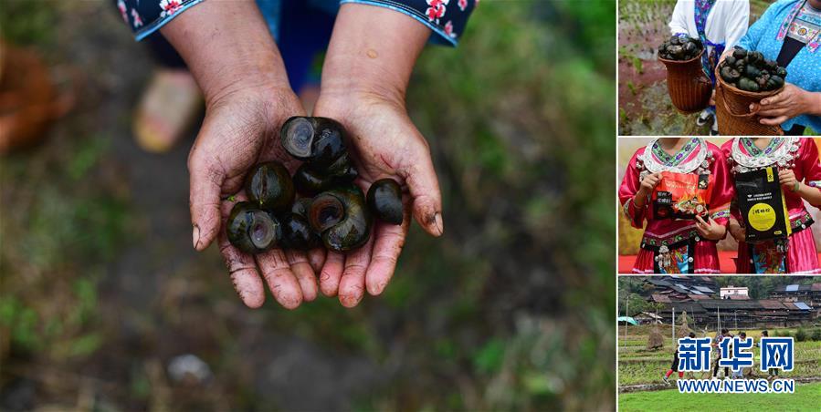 拼版照片:左圖為在拱洞鄉(xiāng)龍令村,貧困戶龍亞手捧剛剛收獲的田螺(11月17日攝);右上圖為龍亞展示收獲的田螺(11月17日攝);右中圖為龍令村養(yǎng)殖的田螺已經(jīng)成為柳州螺螄粉的原材料(10月28日攝);右下圖為龍亞(右一)在稻田里撈田螺(11月17日攝)。今年,拱洞鄉(xiāng)大力發(fā)展稻田養(yǎng)螺產(chǎn)業(yè),目前,全鄉(xiāng)田螺養(yǎng)殖面積突破4000畝,參與的貧困農(nóng)戶有600多戶。 廣西融水苗族自治縣是國家扶貧工作重點縣,全縣“九山半水半分田”,生活生產(chǎn)環(huán)境較為惡劣,脫貧攻堅任務(wù)艱巨,目前還有7.68萬貧困人口。面對經(jīng)濟發(fā)展落后、貧困面廣且程度深的現(xiàn)狀,當?shù)匕衙撠毠耘c創(chuàng)新產(chǎn)業(yè)扶持相結(jié)合,依托生態(tài)資源優(yōu)勢,實施“特色產(chǎn)業(yè)富民行動”,通過發(fā)展特色民族旅游、林下經(jīng)濟和特色養(yǎng)殖業(yè)等扶貧產(chǎn)業(yè),帶動貧困群眾依靠勤勞的雙手,拔窮根摘窮帽,實現(xiàn)脫貧致富。據(jù)了解,目前全縣貧困戶參與特色產(chǎn)業(yè)發(fā)展的有2.9萬戶,扶貧產(chǎn)業(yè)覆蓋率達95%。 新華社記者 黃孝邦 攝