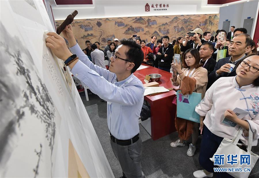 11月23日,來自故宮博物院的技師現(xiàn)場展示書畫裝裱技藝。新華社記者李賀攝