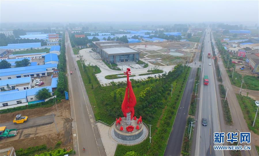這是2017年9月5日無人機(jī)拍攝的位于河南蘭考縣堌陽鎮(zhèn)的中國(guó)民族樂器博覽中心及其周邊的樂器廠廠房。新華社記者馮大鵬攝