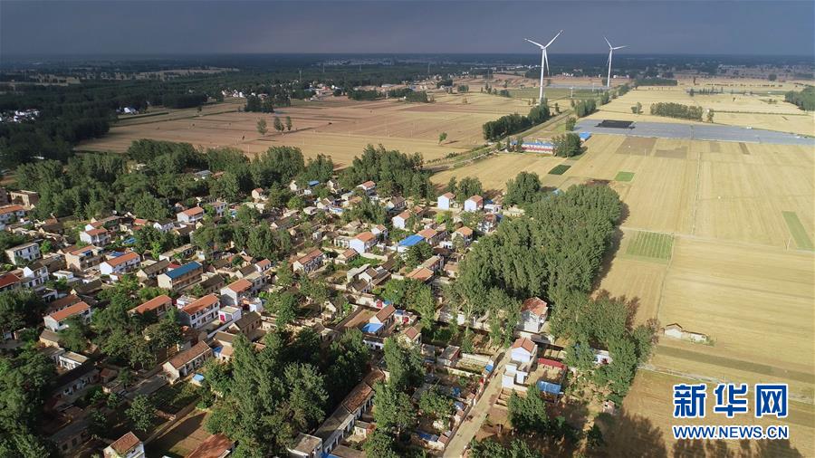這是6月20日無(wú)人機(jī)拍攝的河南蘭考縣東壩頭鄉(xiāng)張莊村周?chē)柠溙锖惋L(fēng)機(jī)。新華社記者馮大鵬攝