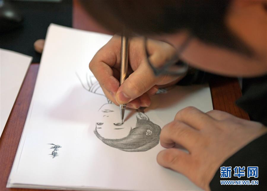 11月23日,盛京滿繡工作室工藝師正在繪制繡品的草圖。新華社記者楊青攝