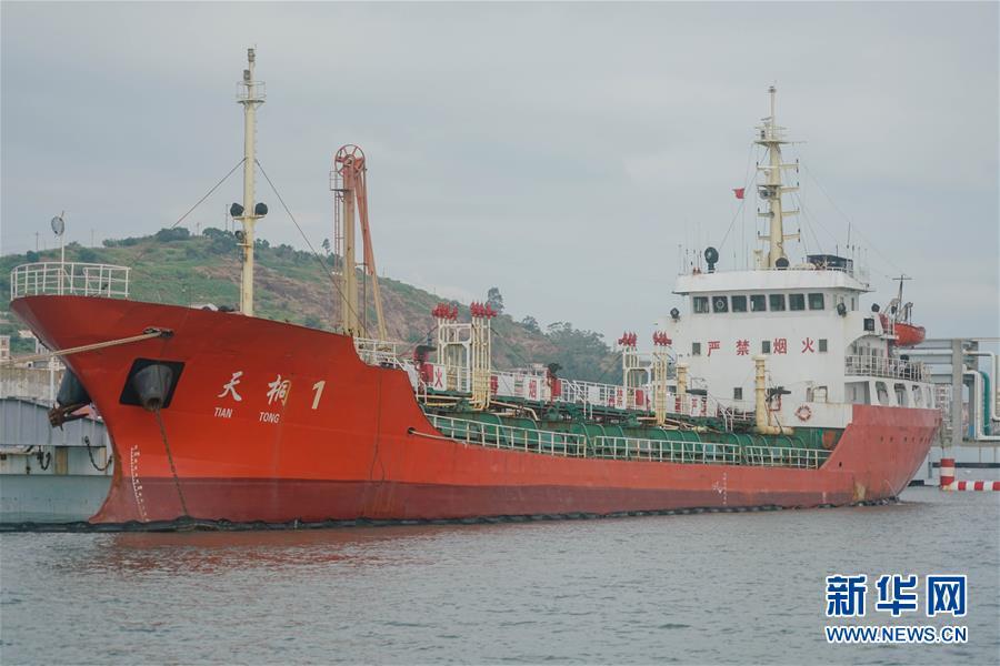 這是停靠在東港石化碼頭正在接受調(diào)查的涉事船只“天桐1號”(11月6日攝)。新華社記者 宋為偉 攝