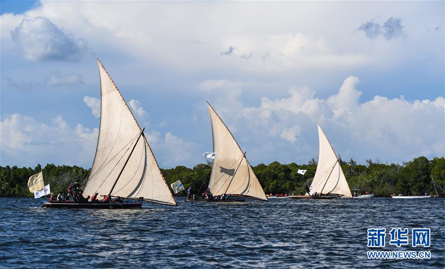 11月24日,拉穆居民在肯尼亞東部印度洋上比賽獨桅三角帆船。這種帆船曾是東非海洋貿(mào)易的主要交通工具,拉穆本地居民至今還以能駕馭三角帆船為榮。