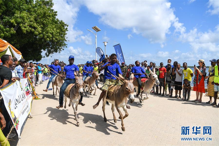 11月24日,在肯尼亞東部印度洋拉穆群島上的拉穆古鎮(zhèn),當?shù)鼐用裨诶挛幕?jié)上進行騎驢比賽。拉穆古鎮(zhèn)為了保存斯瓦希里傳統(tǒng)文化,至今當?shù)貨]有汽車,騎驢是居民主要的交通方式。