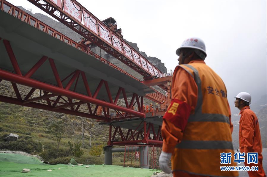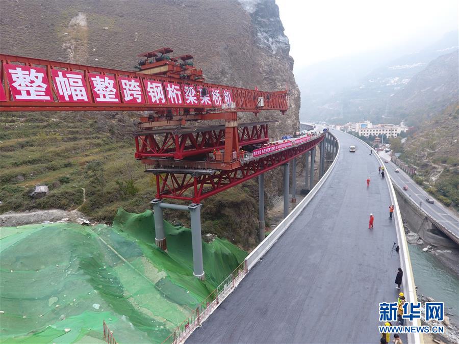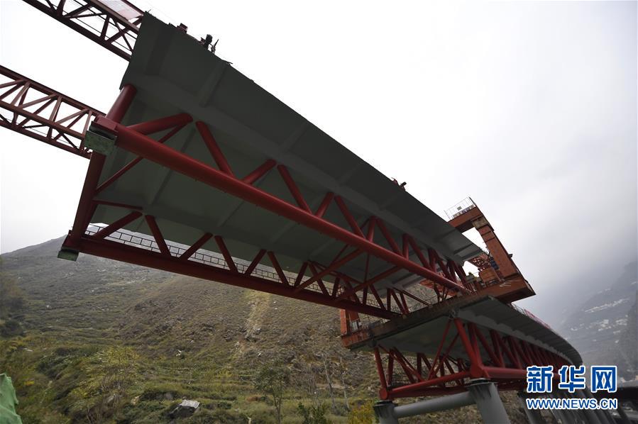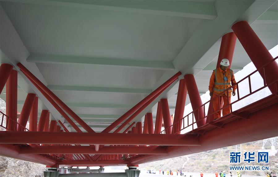 11月3日,工人在克枯大橋合龍現(xiàn)場工作。 當(dāng)日,位于四川省阿壩藏族羌族自治州的汶(川)馬(爾康)高速的控制性工程克枯大橋合龍。 新華社記者 劉坤 攝