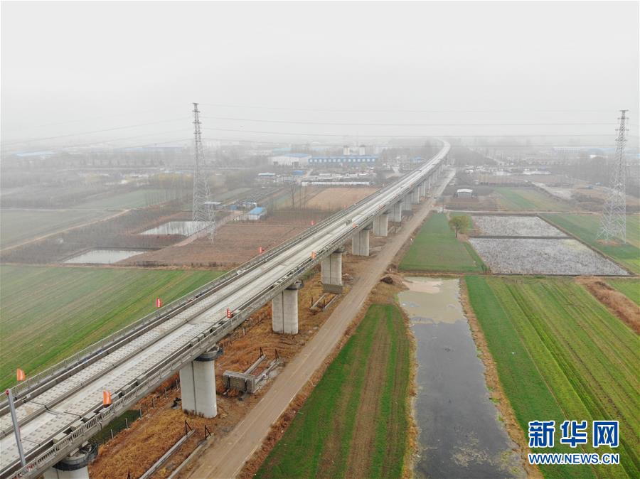 12月2日拍攝的魯南高鐵山東臨沂段(無人機拍攝)。  新華社記者 邢廣利攝