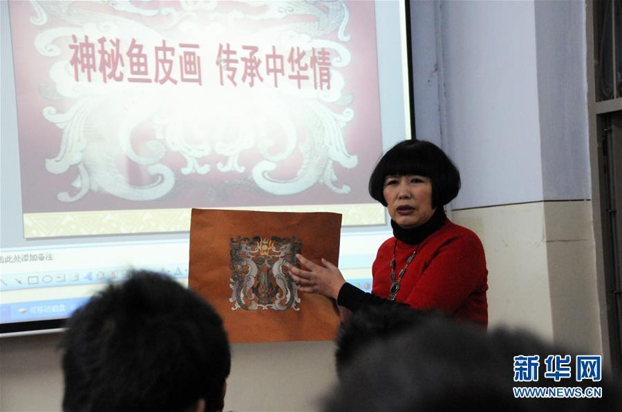 12月3日,張琳在哈爾濱輕工業(yè)學校講授魚皮畫制作技藝。國家級非物質(zhì)文化遺產(chǎn)赫哲族魚皮制作技藝是我國赫哲族傳統(tǒng)手工藝術。作為這項技藝的黑龍江省級傳承人,十余年來,張琳一直從事魚皮畫的研究和創(chuàng)作,并通過做推廣、開講座、辦活動,讓更多年輕人了解并喜歡上這一傳統(tǒng)手工藝,將這項瀕臨失傳的藝術更好地傳承下去。新華社記者 王凱 攝