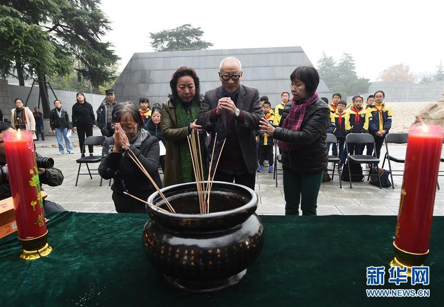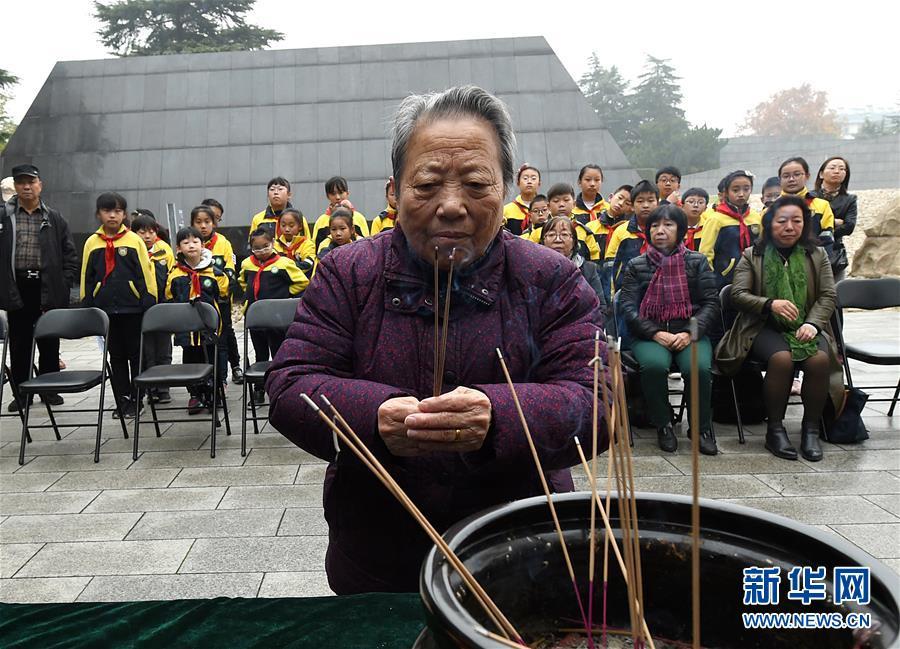 12月3日,南京大屠殺幸存者石秀英焚香祭奠被侵華日軍殺害的親人。 當(dāng)日,在第五個南京大屠殺死難者國家公祭日到來之際,南京大屠殺死難者遺屬家祭活動在侵華日軍南京大屠殺遇難同胞紀念館正式啟動。首批前來開展家祭活動的南京大屠殺幸存者余昌祥、石秀英老人分別率家屬在紀念館內(nèi)的死難者名單墻前獻花、敬香、跪拜,并誦讀家信,表達對親人的哀思。 新華社記者 孫參 攝
