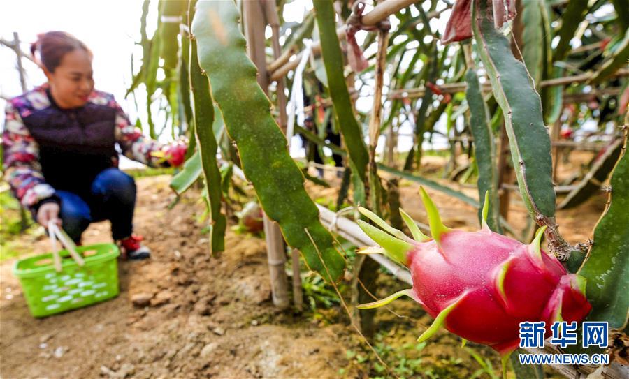 12月3日,一名北京游客在大廠(chǎng)回族自治縣一家農(nóng)業(yè)園采摘火龍果。