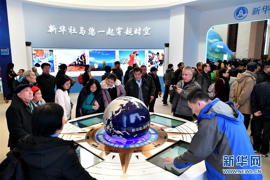 12月4日,觀眾在新華社展項(xiàng)的“歲月羅盤”互動(dòng)體驗(yàn)項(xiàng)目前參觀。 新華社記者 李鑫 攝