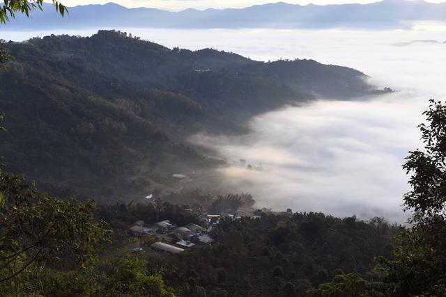 12月5日,云南省普洱市瀾滄拉祜族自治縣景邁山云霧繚繞,蔚為壯觀(無人機(jī)拍攝)。 新華社記者楊宗友 攝影報(bào)道