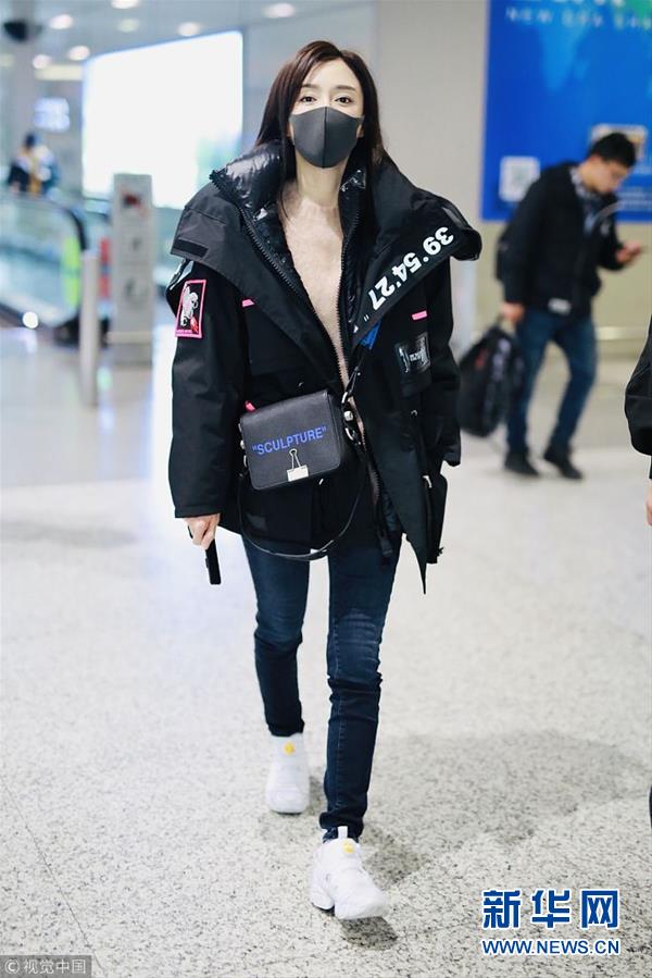 2018年12月3日,上海,秦嵐亮相機(jī)場(chǎng)。潮味棉服亮相機(jī)場(chǎng)變酷女孩,口罩遮面露甜笑心情靚。(圖片來(lái)源:視覺(jué)中國(guó))