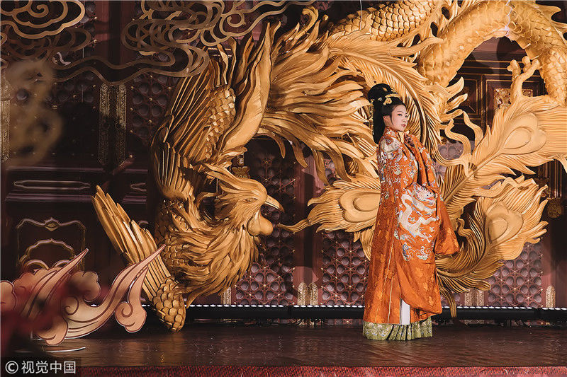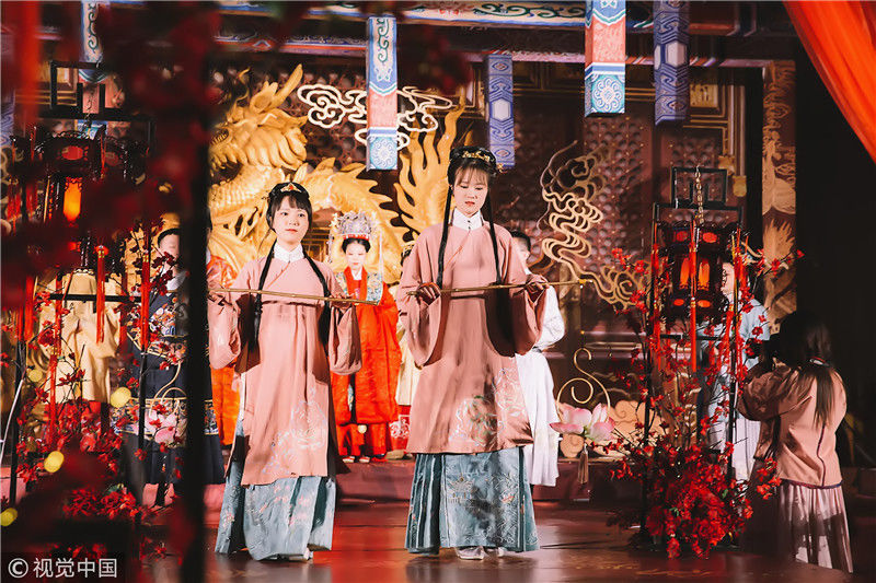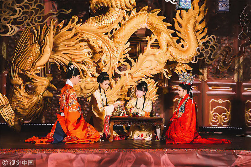 2018年11月18日,浙江嘉興。海寧一位女孩為了籌辦自己的漢婚大禮,囤衣服、囤首飾,準(zhǔn)備整整六年。圖為婚禮現(xiàn)場(chǎng)。周建仕/視覺(jué)中國(guó)
